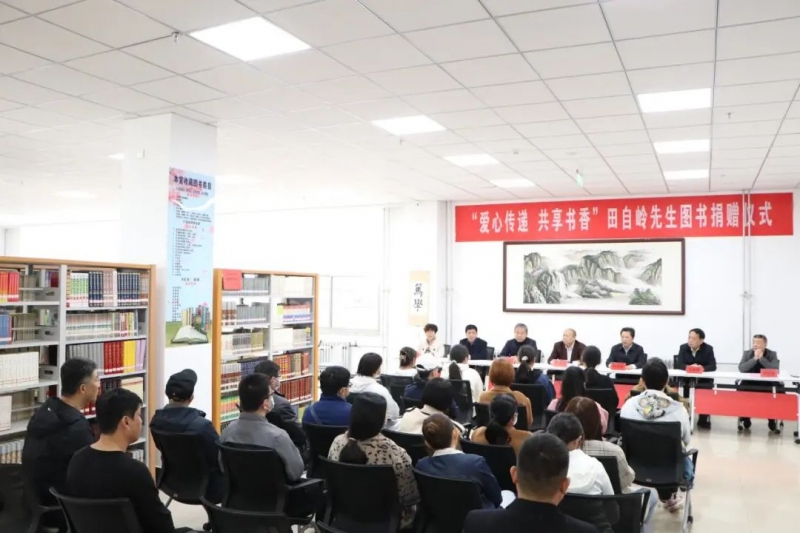 田自岭先生结合自身经历谈到了读书对人生发展起到的重要作用。此次捐赠的书籍都是在日常工作、学习中的常用书籍,里面涵盖了政治、经济、哲学、历史、文化、法律等方面的内容,特别适合大学生和老师阅读。田自岭先生呼吁社会各界积极向图书馆捐赠图书,让每一本好书发挥最大价值。
