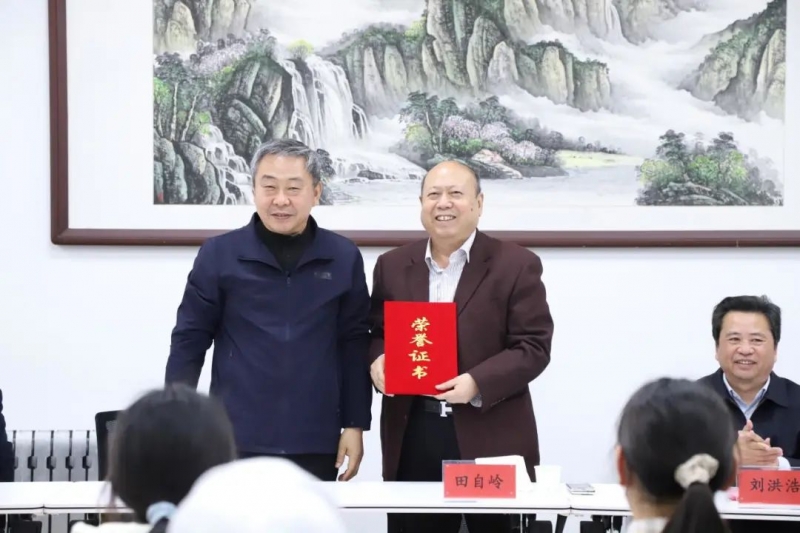 仪式上,刘东波代表学校接受了图书捐赠,并向田自岭先生颁发荣誉证书。图书馆馆长孙玉枝表示此次捐赠的3051册图书,将妥善保管和使用,使其发挥最大价值。