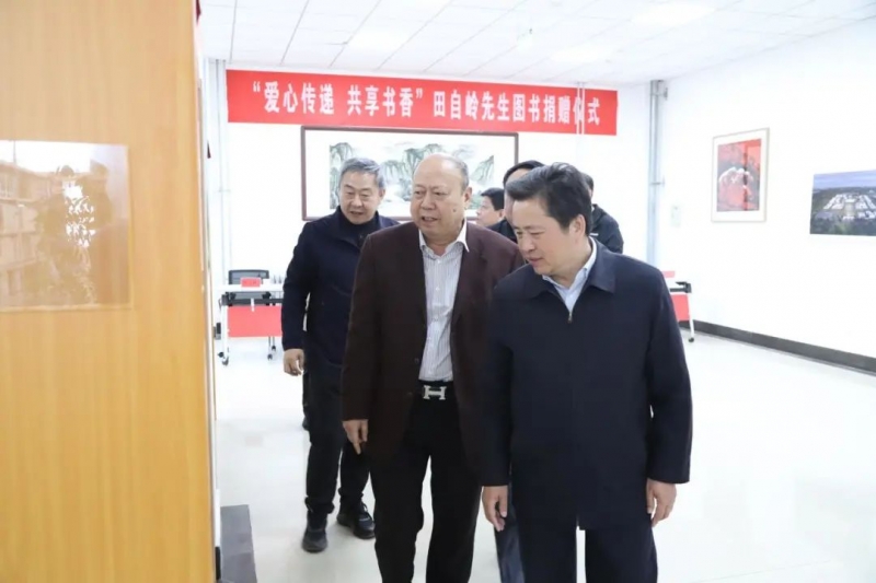 仪式结束后,田自岭先生在校领导的陪同下,参观了图书馆和校园环境。