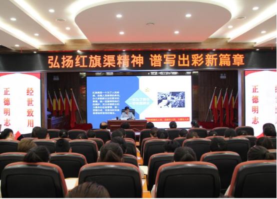 董娣副书记讲到,习近平总书记之所以在党的二十大闭幕不到一周的时间便奔赴河南安阳市林州市红旗渠考察,并在参观红旗渠纪念馆时说“红旗渠很有教育意义,大家都应该来看看”,就是因为红旗渠是党带领人民创造的人间奇迹,为我们树起了一座跨越时空的精神丰碑。红旗渠精神,是我们党宝贵的精神财富,更是我们在新时代新征程上战胜困难、赢得未来的精神力量,指引着中国共产党把人民对美好生活的向往变成现实。