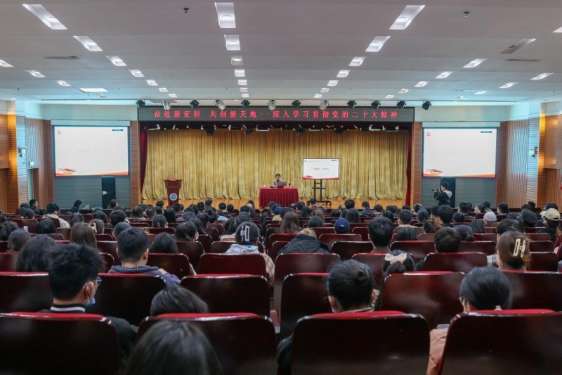 赵璐老师以“奋进新征程 共创新天地——深入学习贯彻党的二十大精神”为题,聚焦非凡成就与伟大变革的实践之基、思想精髓与方法意义的理论之锐、中心任务与总体部署的战略之向、自我革命和时代要求的奋进之志四个方面,通过丰富的案例和生动的讲解,系统阐述了党的二十大提出的重大思想观点、重要论断和重大举措,带领大家深刻认识了立足新时代新征程的新思想、新观点、新境界,深入解读了习近平新时代中国特色社会主义思想的根本立场、核心观点和科学方法,并指出要深刻把握时代要求,坚持问题导向和历史主动,从逻辑中领会思想高度,在斗争中历练过硬本领,于实绩中体现品格担当。