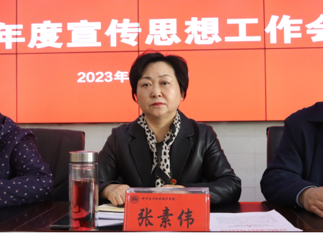 党委书记张素伟就进一步加强和改进学校的宣传思想工作提出三点要求,一是提高政治站位,深化思想认识,切实增强宣传思想工作和意识形态工作的政治自觉、思想自觉和行动自觉;二是正确认识新形势下高校宣传思想工作和意识形态工作的新态势新要求;三是坚持守正创新,奋力开创学校宣传思想工作和意识形态工作的新局面。