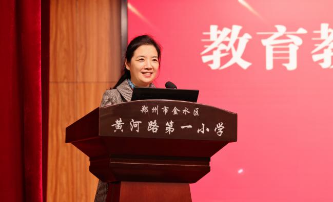 金水区教育局教育科科长杜菁为黄河路第一小学骨干教师颁发教育教学实践基地指导教师聘书,并在讲话中充分肯定了设立教育教学实践基地的重大意义,期待两校在教学实践、人才培养、科研合作等方面通力合作,共同推进高校实践教学的改革与发展。