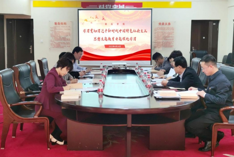 为深入学习贯彻习近平总书记在主题教育工作会议上的重要讲话精神,扎实开展学习贯彻习近平新时代中国特色社会主义思想主题教育,做到“学思想、强党性、重实践、建新功”,4月28日,商丘学院党委理论学习中心组在新主楼党建活动室举行“学习贯彻习近平新时代中国特色社会主义思想主题教育”专题学习研讨会。全体党委委员参加会议,会议由校党委书记张冰燕主持。