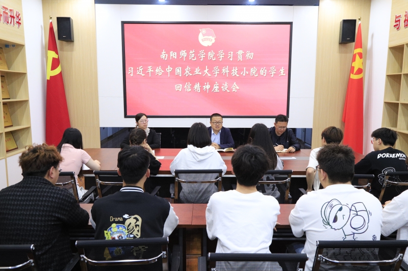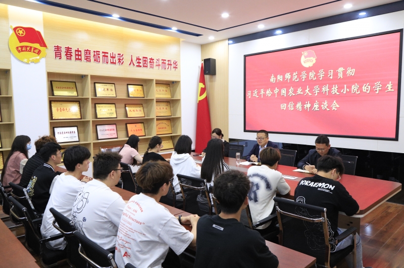 五四青年节到来之际,为激励广大青年担当时代重任,牢记五四精神,不忘青春真谛。5月4日上午,南阳师范学院团委在大学生服务中心208会议室举行学习贯彻习近平给中国农业大学科技小院的学生回信精神座谈会。该校团委负责老师、各学院学生代表参加。