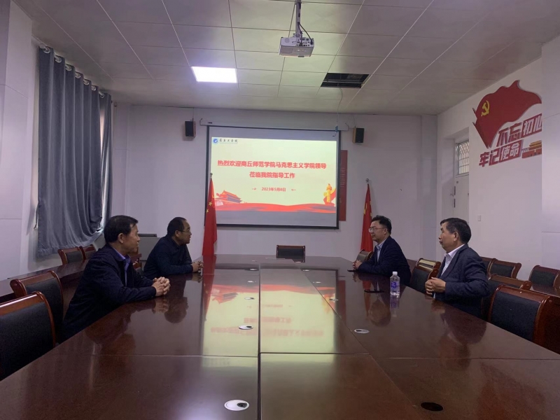 为加强兄弟院校马克思主义学院之间的交流合作,进一步推动马克思主义学院建设,5月8日下午,商丘师范学院马克思主义学院党委书记龚志宏、院长司永海一行到商丘工学院马克思主义学院开展调研交流。商丘工学院马克思主义学院党总支书记崔浩、院长赵国栋陪同调研交流,教师代表参加了交流会。