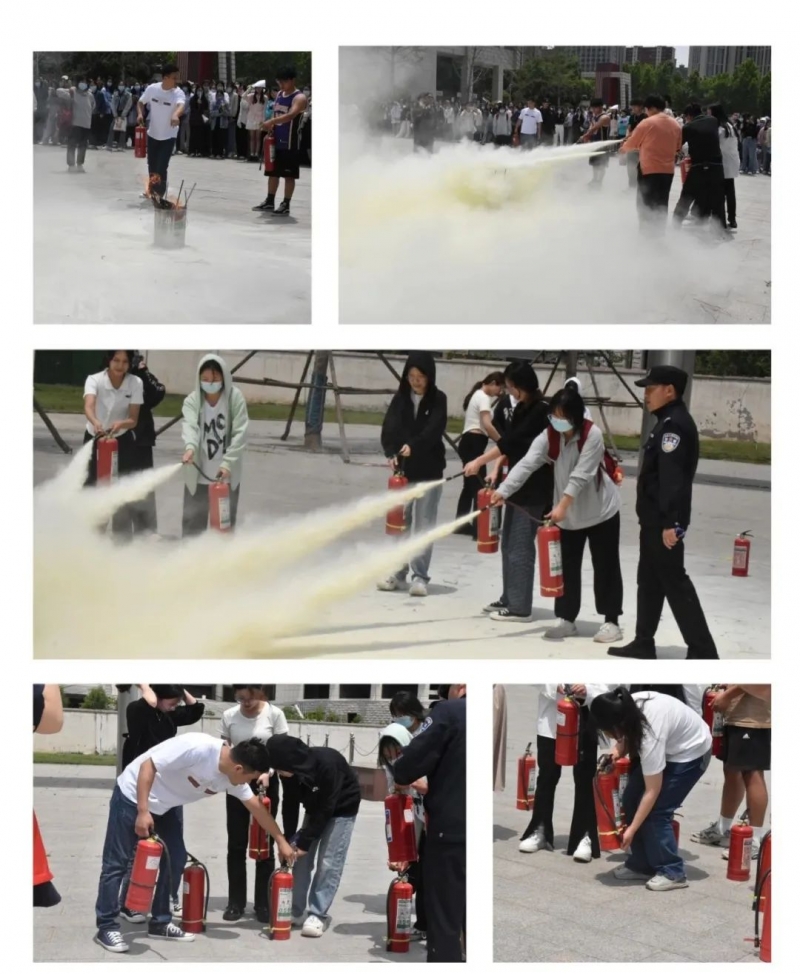 大有路派出所的民警同志为同学们现场示范了灭火器的正确使用步骤及姿势,同学们纷纷走上前,亲身体验了使用灭火器扑灭火苗。