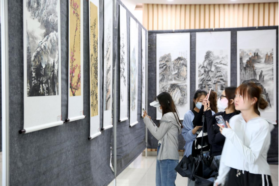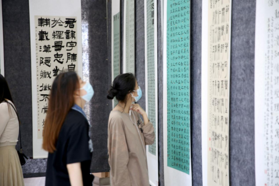 开展当日,190幅书画作品吸引了众多师生前来观摩。工笔国画、写意国画、楷书、隶书、篆刻等,众多类型的书画作品令人目不暇接。一时间,现场观者如织,热闹非凡。