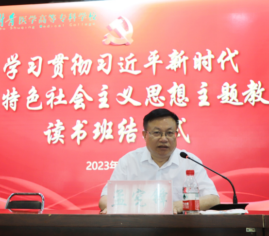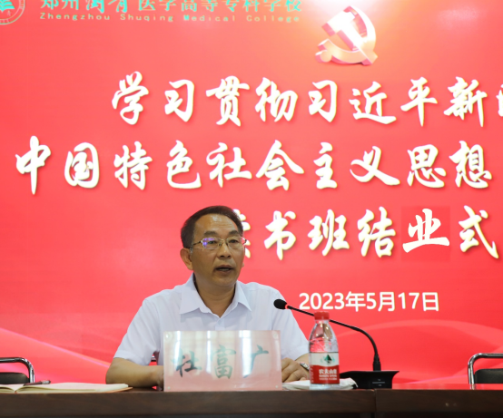 5月18日下午,郑州澍青医学高等专科学校在图书馆六楼会议室举行学习贯彻习近平新时代中国特色社会主义思想主题教育读书班结业式。校领导班子成员及学校全体党员参加了结业式。党委副书记、副校长杜富广主持结业式。