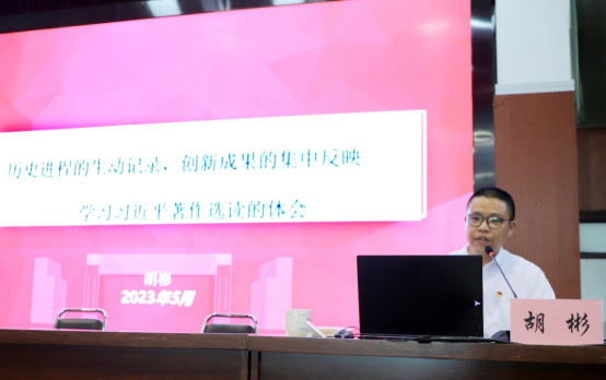 会上,马克思主义学院副院长胡彬围绕学习收获和学习体会作了题为《历史进程的生动记录,创新成果的集中反映》的交流发言。