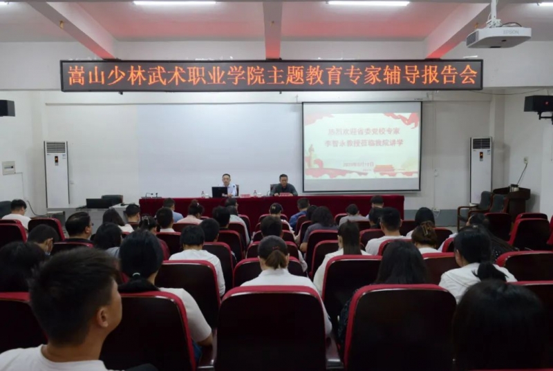 为深入推进学习贯彻习近平新时代中国特色社会主义思想主题教育工作,提升主题教育读书班学习质效,5月19日上午,嵩山少林武术职业学院特邀河南省委党校李智永教授作专题辅导讲座。校领导班子成员、中层干部和全体党员参加会议。省党建指导员、院党委副书记黄彦辉主持会议。