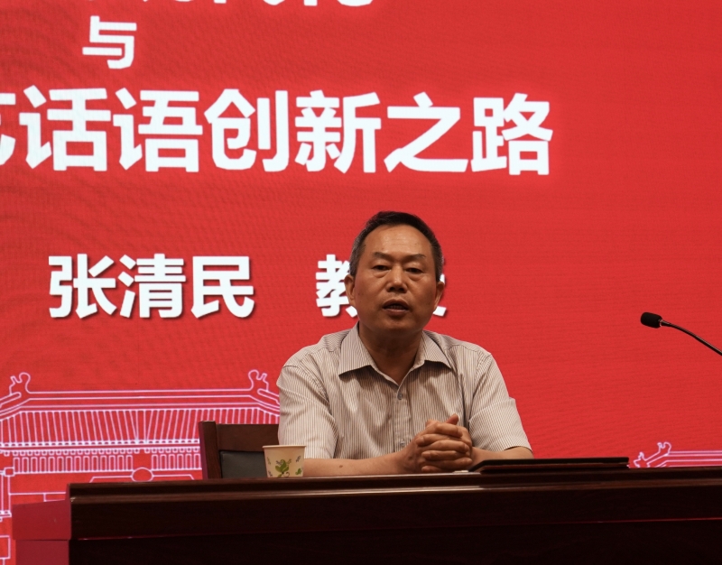 讲座中,张清民从党的二十大精神入手,讲述当代文艺话语的创新意义。他认为,当代文艺话语其实是中国式现代化的审美表述,并结合中国现代化的发展历程,分析文艺话语创新的历史经验与经典文本。