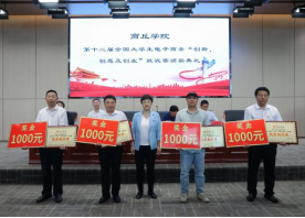 党委副书记史万庆宣读《商丘学院关于表彰第八届“互联网+”大学生创新创业大赛优秀团队和优秀组织单位的决定》《商丘学院关于表彰2022年电子商务“三创赛”暨第十二届全国大学生电子商务“三创赛”优秀团队和优秀组织单位的决定》;党委副书记、副校长张再望宣读《商丘学院关于举办第九届中国国际“互联网+”大学生创新创业大赛的通知》。