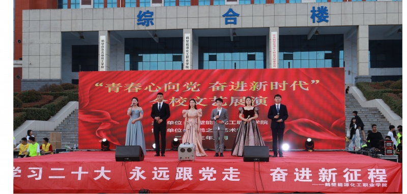 为了进一步学习贯彻党的二十大精神,践行社会主义核心价值观,繁荣校园文化,展现青年学生的精神风貌,5月15日下午,鹤壁能源化工职业学院在综合楼前广场举行了“青春心向党 奋进新时代”全校大型文艺展演活动。