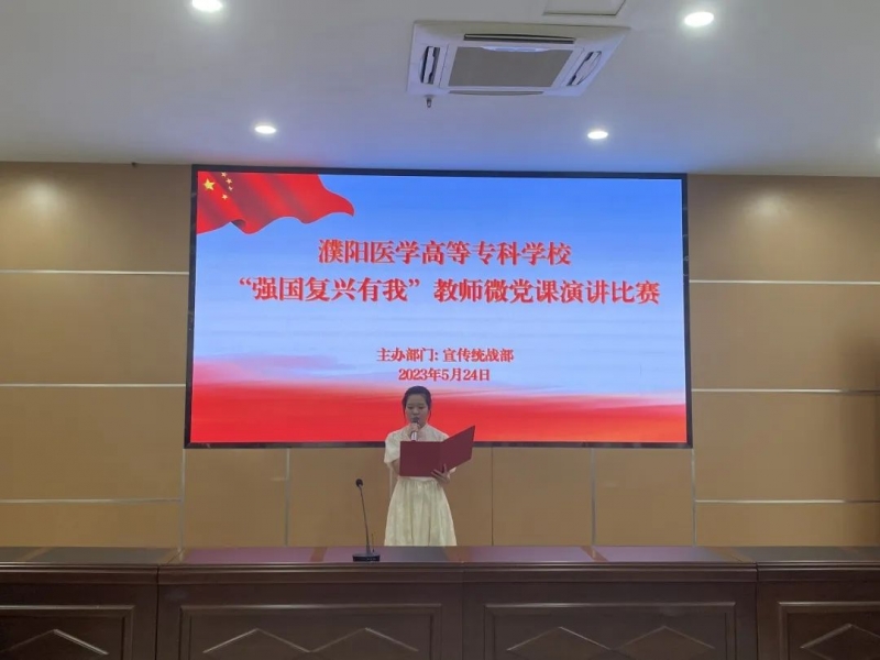 为深入贯彻落实党的二十大精神,抒发师生爱党爱国爱社会主义情怀,传承中华传统美德,引导师生“听党话、感党恩、跟党走”,唱响奋斗新时代、奋进新征程的最强音,5月23日、24日,濮阳医学高等专科学校举办“强国复兴有我”大学生微故事讲述比赛和“强国复兴有我”教师微党课演讲比赛。校纪委书记王庆元出席。各系党支部师生代表500余人参加。