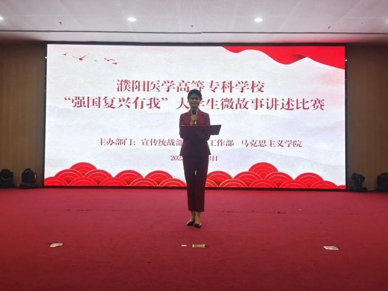 赛场上,同学们讲述了李大钊、夏明翰、陈乔年、陈延年、刘胡兰等一批革命者,抛头颅、洒热血,披荆斩棘开拓革命道路;讲述了黄文秀情系脱贫事业无惧牺牲的精神;讲述了中医大家发扬中医传统文化,救生命、泽世人的高尚品德;讲述了濮阳医学高等专科学校师生万众一心、勇于奉献的伟大抗疫精神,特别是药学系学生代家宝在高铁上用所学知识奋力救治病患的感人故事。老师们讲述了中国共产党的百年奋斗历程;讲述了各行各业建设者为了实现国家富强、人民幸福,矢志拼搏、接续奋斗的峥嵘岁月;讲述了国防战线上,为万家灯火执枪站岗,为亿万百姓安宁生活守护边疆的人民子弟兵。选手们以先辈、以楷模为榜样,在赛场上表示一定要坚定如磐信念,激扬浩然正气,挺起新时代的民族精神脊梁,始终保持一往无前、昂扬向上的锐气。时刻以实现中华民族伟大复兴为己任,不畏艰难险阻,勇担时代使命,让人生在为党、为祖国、为人民的奉献中绽放出更加绚丽的光彩。