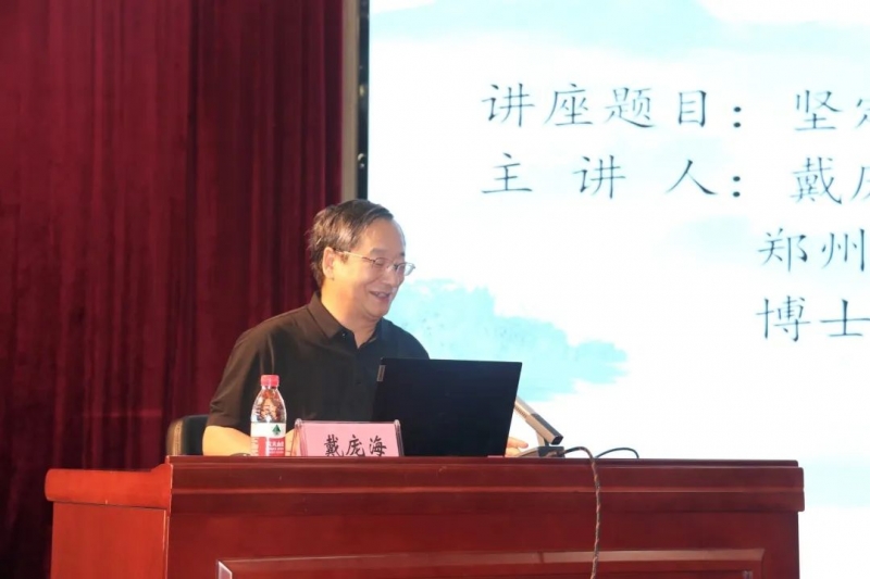 郑州大学历史学院教授戴庞海做题为《坚定文化自信,传承创新中华优秀传统文化》的报告。戴庞海以什么是坚持“四个自信”为开篇,论述了坚持“文化自信”的重要性。用文化自信的提出,文化自信的内涵、基础和意义,文化与中国传统文化,中华传统文化的特点与基本精神,坚定文化自信,实现文化强国五个方面,阐述如何通过弘扬优秀中华民族传统文化,学习伟大革命文化,把握社会主义先进文化前进方向,坚定更基础、更广泛、更深厚的文化自信,不断增强国家文化软实力,不断提高中华文化的国际影响力,早日建成社会主义文化强国,实现国家的繁荣富强、屹立于世界民族之林。