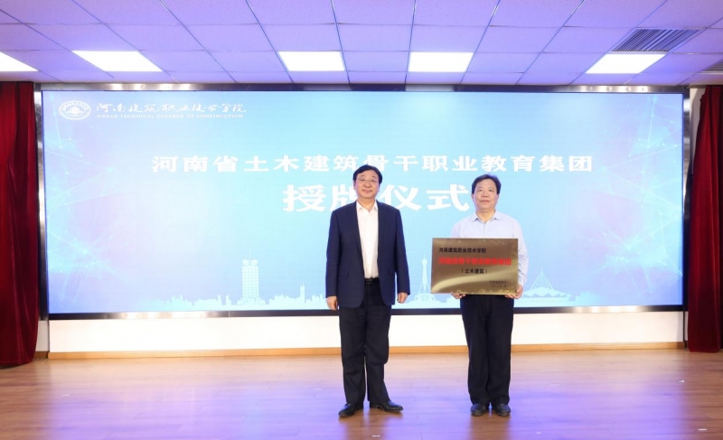 河南省教育厅副厅长朱自锋为河南省土木建筑骨干职业教育集团授牌