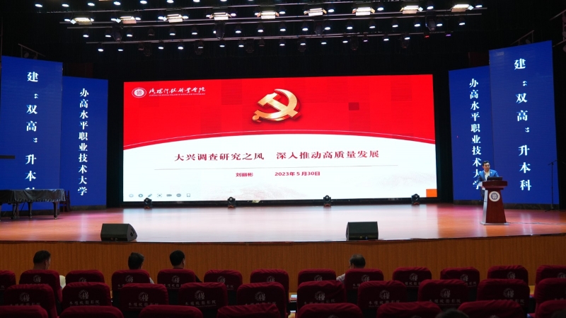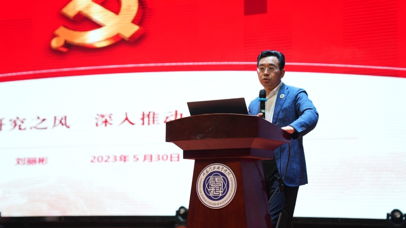 深入推进学习贯彻习近平新时代中国特色社会主义思想主题教育走心走深走实,5月30日,党委副书记、校长刘丽彬博士以《大兴调查研究之风 深入推动高质量发展》为题,在学校新民学堂作主题教育专题党课。专题党课既有理论高度,又有实践深度,为全体教职工进行了一场内容丰富、视野开阔、形象生动的主题教育辅导。