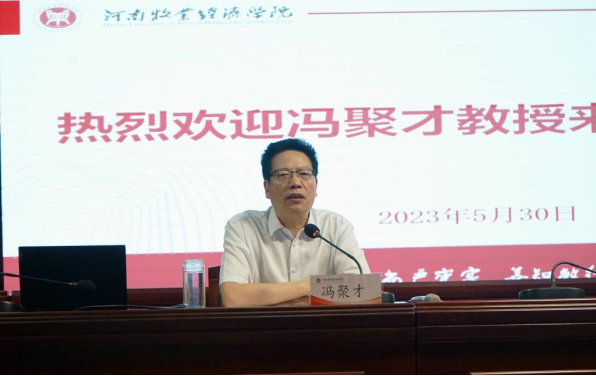 为全面学习贯彻党的二十大精神,深入学习领会习近平总书记关于中国式现代化的重要论述,5月30日下午,河南牧业经济学院在图书馆一楼报告厅召开党委理论学习中心组扩大会议,特邀郑州大学马克思主义学院冯聚才教授作专题报告,校党委理论学习中心组成员、学校副处级以上干部参加学习,会议由党委委员、宣传部部长吴静主持。