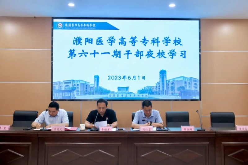 6月1日,濮阳医学高等专科学校召开第六十一期“干部夜校”大学习。在校领导班子成员出席,各部门主要负责人参加。会议由校党委书记李铁军主持。