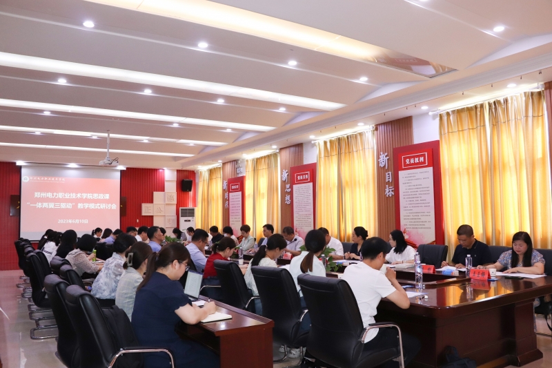 为推进学习贯彻习近平新时代中国特色社会主义思想主题教育取得实效,加快推进我校省级示范性马克思主义学院创建,有力推动郑州电力职业技术学院河南省供用电技术高水平专业群建设,促进思政课建设经验交流、辐射、推广。6月10日,郑州电力职业技术学院思政课“一体两翼三驱动”教学模式研讨会在办公楼五楼党员活动室成功举办,研讨会主要包括主旨报告、主题汇报、专家点评和交流研讨四个部分。