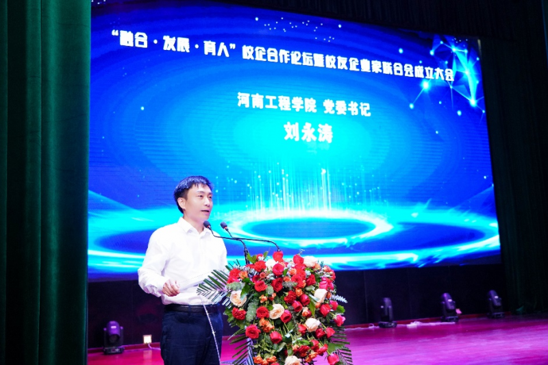 校党委书记刘永涛发表热情洋溢的致辞,代表学校向长期以来情系母校、关心和支持母校建设发展的广大校友表示诚挚的感谢。他指出,校友是母校推进发展的宝贵财富和可靠依赖,是学校的价值体现和最好名片。他表示,河南工程学院历来高度重视校友工作,为校友搭建交流合作平台,全面构建校友与母校发展的感情共同体、价值共同体、命运共同体,进一步凝聚智慧力量,提升融合发展育人能力,努力实现全员育人、全程育人、全方位育人。他希望广大校友脚踏实地、努力奋斗,弘扬河工精神,唱响河工声音,在以中国式现代化全面推进中华民族伟大复兴的征程中书写河工风采。