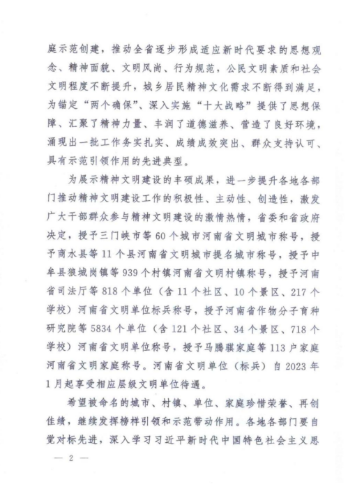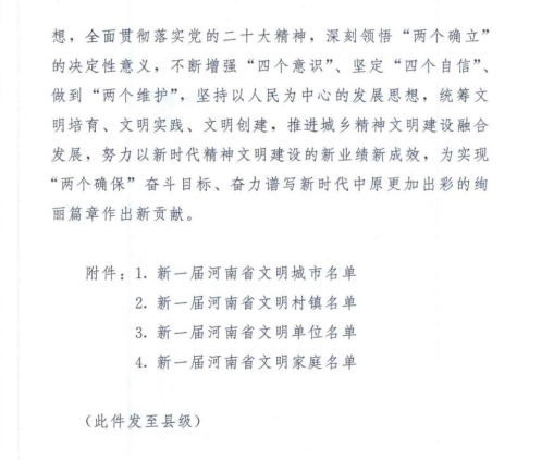 近日,中共河南省委、河南省人民政府下发《关于命名新一届河南省文明城市文明村镇文明单位文明家庭的决定》(豫文〔2023〕50号)文件,焦作师范高等专科学校被授予“河南省文明校园标兵”称号,这是学校精神文明建设工作取得的重大标志性成果。