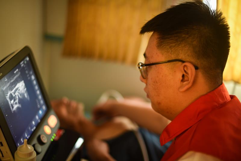 活动现场,前来筛查的村民排起了长龙,志愿者们耐心引导,有序进行相关检查。医护人员和志愿者为每一位前来参加检查的村民进行细致的B超检查,借助设备内部的超声AI辅助诊断系统自动识别,快速定位甲状腺、乳腺等部位的病变位置,对病变进行测量和标注,本次癌症筛查项目包括甲状腺癌、乳腺癌等。医务人员耐心给每位村民做检查的同时,还对她们每个人做健康指导及保健知识宣传,对部分恐惧癌症的村民还进行了心理辅导,所有筛查结果均登记造册,并对村民予以反馈。杜家庄村的老百姓纷纷表示感谢。“我是今天第一个!感谢你们让我不用跑到医院就能做检查,真是太方便了。”“这个医疗车真好,你们志愿者都到家门口给我们免费做检查了,服务太贴心了!”“真是太好了,没花一分钱就做了乳腺癌和甲状腺癌检查。”