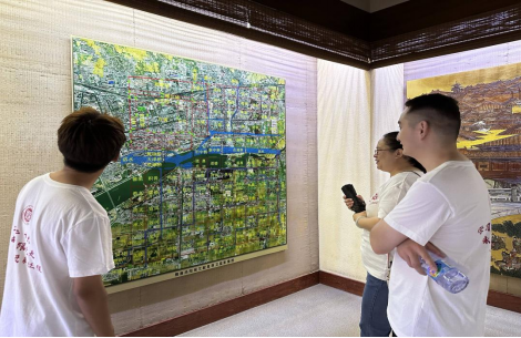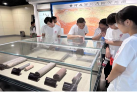 图为河南财经政法大学团队成员参观黄河博物馆展品
