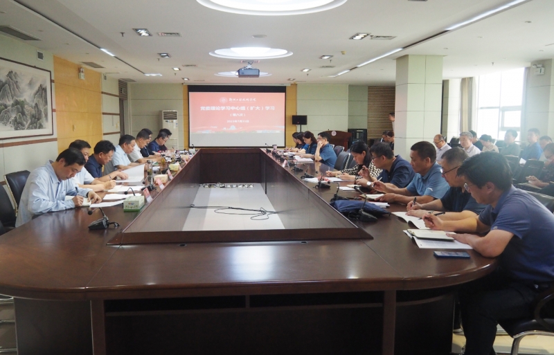7月31日上午,郑州工程技术学院党委书记甘勇在英才校区明德楼A408会议室主持召开党委理论学习中心组(扩大)学习会议,传达学习习近平总书记在二十届中央政治局第五次、第六次集体学习时的重要讲话精神,领学习近平总书记《论党的自我革命》,传达学习中国共产党河南省第十一届委员会第五次全体会议精神等重要内容。校领导,党委委员、各部门主要负责人和各学院党政负责人参会学习。