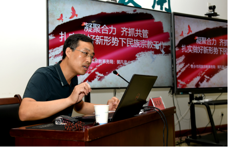 为深入学习贯彻中央民族工作会议和全国宗教工作会议精神,根据新乡职业技术学院2023年度理论学习中心组学习计划,7月31日上午,新乡职业技术学院召开党委理论学习中心组(扩大)学习会议,邀请新乡市民族宗教局四级调研员——郭凡非同志来校作民族宗教工作专题讲座。党委理论学习中心组全体成员、各二级学院党总支书记、副书记及相关职能部门负责人参加会议。