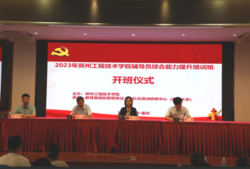 8月2日,郑州工程技术学院2023年辅导员综合能力提升班在西南大学开班,西南大学党委副书记潘洵教授、郑州工程技术学院副校长李欣教授及郑州工程技术学院95名学员参加开班仪式,仪式由西南大学马克思主义学院副院长靳玉军教授主持。