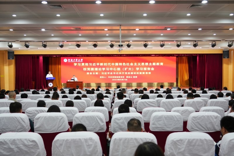 8月7日上午,河南工业大学党委理论学习中心组在学术报告中心D303报告厅举行扩大会议,围绕“学思想、守规矩--习近平总书记关于党的自我革命战略思想专题学习”主题开展集中学习。中共河南省委党校党建部樊金山教授应邀作专题报告。校领导、学校全体中层领导人员参加集中学习。会议由河南工业大学党委副书记周相寅主持。