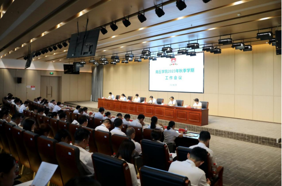 他指出,2023年秋季学期学校工作的总体要求是:坚持以习近平新时代中国特色社会主义思想为指导,紧紧围绕学习贯彻党的二十大精神这条主线,认真贯彻落实习近平总书记关于教育的重要论述,贯彻落实集团2023年工作会议精神,加强党对学校工作的领导,全面贯彻党的教育方针,坚决维护校园安全和稳定,以立德树人为根本任务,以推动学校高质量发展为主题,以本科教育教学审核评估为契机,以“工作落实年”活动为抓手,深化改革,狠抓落实,加强教学内涵建设,创新人才培养模式,全面提升学校服务经济社会发展的能力,不断塑造发展新动能新优势,奋力谱写学校高质量发展新篇章,为服务建设“教育强国”、锚定“两个确保”、实施“十大战略”,实现新时代中原更加出彩贡献商丘学院力量。他从深化党的二十大精神学习宣传贯彻,推动学校思想政治工作守正创新;聚力培根铸魂,落实立德树人根本任务;瞄准人才培养达成度和社会需求适应度,推进教育教学内涵建设;实施人才强校战略,建设高素质创新型教师队伍;加强法治校园建设,提升服务保障水平等五个方面安排部署了2023年秋季学期工作。
