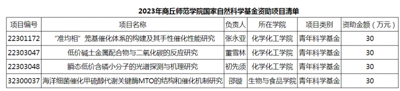 近日,国家自然科学基金委员会发布了《关于2023年国家自然科学基金集中接收申请项目评审结果的通告》(国科金发计〔2023〕62号)。商丘师范学院4个项目获批立项,直接经费资助总额120万元。