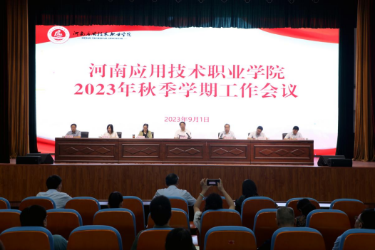 9月1日,河南应用技术职业学院在学生活动中心召开2023年秋季学期工作会议。全体在校领导班子成员出席,全体中层干部参会,会议由副校长陈君丽主持。