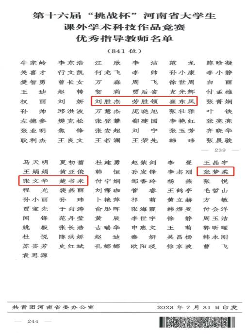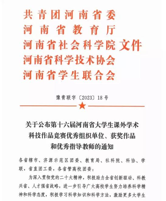 近日,由共青团河南省委、河南省教育厅、河南省人力资源和社会保障厅、河南省科学技术协会、河南省学生联合会共同举办的第十六届“挑战杯”河南省大学生课外学术科技作品竞赛获奖名单公布。周口职业技术学院共有22个项目获奖,其中一等奖2项,二等奖5项,三等奖15项。