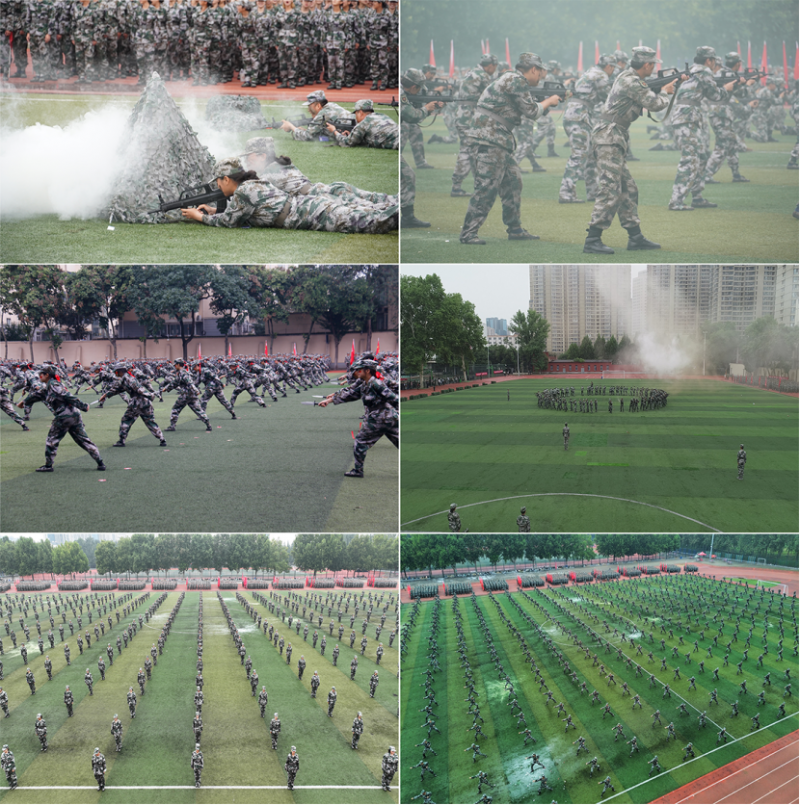 参训学生进行了综合战术表演、捕俘刀、军体拳和分列式等军事科目汇报表演,展示了军事技能训练成果。同学们斗志昂扬、英姿飒爽,充分体现了当代大学生良好的综合素质和朝气蓬勃、积极向上的精神风貌,全方位展示了军训第一课对大学生品格塑造和身体锤炼的重要作用。