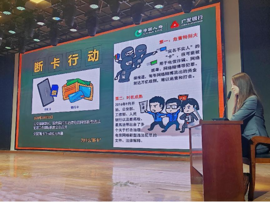 特邀讲师从“银行的产生与发展”“远离校园贷”“个人征信记录”等三个方面宣传了金融安全知识,通过科普“断卡行动”将失信的严重后果告知大家。着重强调了作为大学生,应如何防范不法分子利用银行卡盗取个人信息,进行电信诈骗、贷款等不法行为。宣讲过程中,互动氛围融洽,听众热情高涨,学习效果良好。