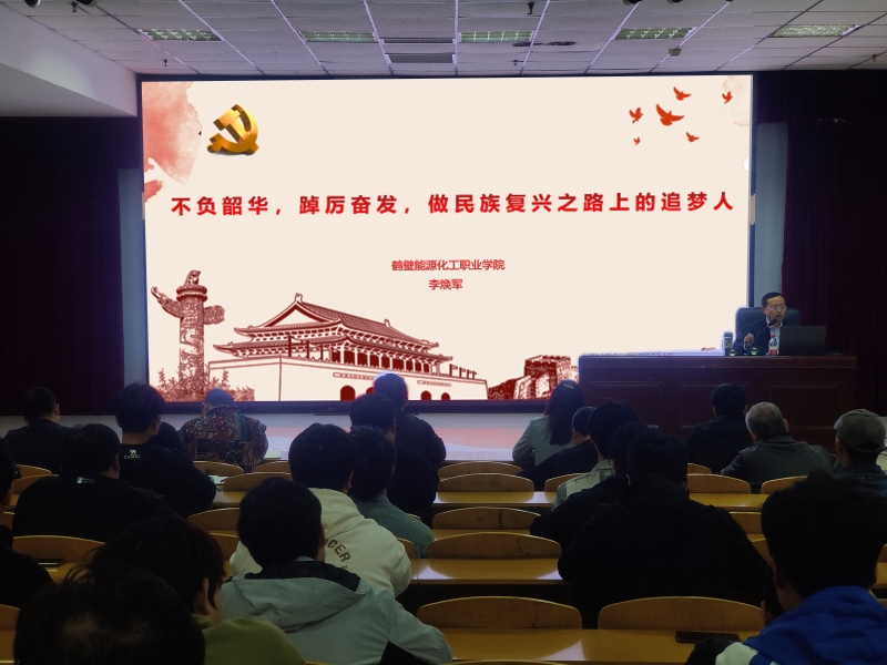 为学习宣传贯彻党的二十大精神,深入推进习近平新时代中国特色社会主义思想进教材、进课堂、进头脑,近日,鹤壁能源化工职业学院党委委员、工会主席李焕军以“不负韶华,踔厉奋发,做民族复兴上的追梦人”为主题,为学院学管党支部全体教师和部分2023级高职新生上了一堂生动、精彩的思政课。