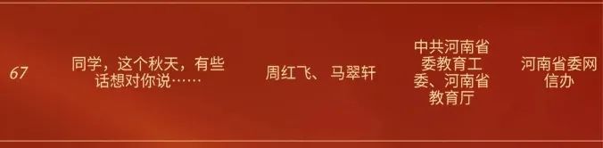《同学,这个秋天,有些话想对你说……》入选全国“五个100”正能量作品。