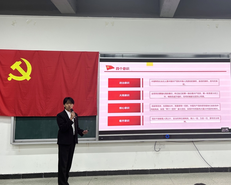 学生党员秦培钧在“微党课”中说,在社会主义现代化强国建设的过程中,青年成长成才是党和人民的殷切期望,当代青年人要学好红色历史,传承红色基因,把党的光荣传统和优良作风发扬光大,为实现中华民族的伟大复兴而不懈奋斗。
