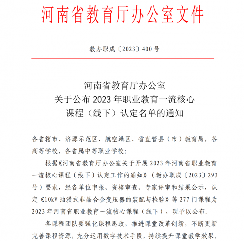 近日,河南省教育厅印发《关于公布2023年职业教育一流核心课程(线下)认定名单的通知》,河南开放大学《会计信息系统应》(主持人:田俊敏)和《建筑工程测量》(主持人:马潇潇)两门课程被认定为2023年河南省职业教育一流核心课程(线下)。