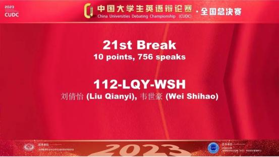 据了解,中国大学生英语辩论赛(China Universities Debating Championship,CUDC)由全国翻译专业学位研究生(MTI)教育指导委员会指导,中国外文局全国翻译专业资格(水平)考试(CATTI)项目管理中心主办的一项高水平的英语辩论赛事。大赛引导辩手深入讨论国际热点时事和多元文化问题,比赛主题覆盖经济、法律、伦理、教育、科技等多个领域,旨在培养大学生的英语口语能力、批判性思维和逻辑推理能力。