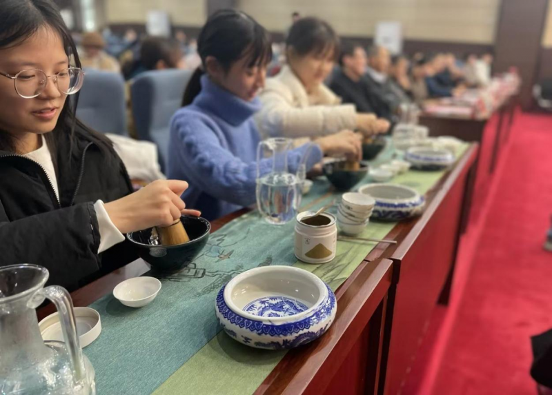 点茶茶艺可谓宋代极致美学与千年风雅的代表。河南省图书馆郑东分馆翟芝伦老师为大家讲解宋代点茶文化之美。在翟老师的指导下,同学们踊跃登台体验点茶过程,感受传统文化的独特魅力。