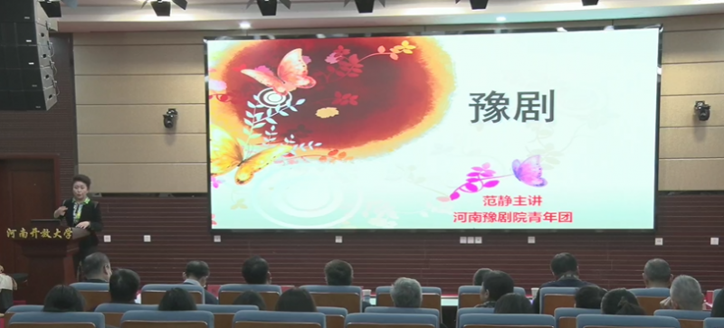 著名豫剧表演艺术家、河南省级非遗传承人范静带来豫剧表演《戏曲艺术进校园》,婉转清亮的唱腔,轻盈地迈步,生动诠释了传统戏曲文化的美妙,深受师生们的喜爱。
