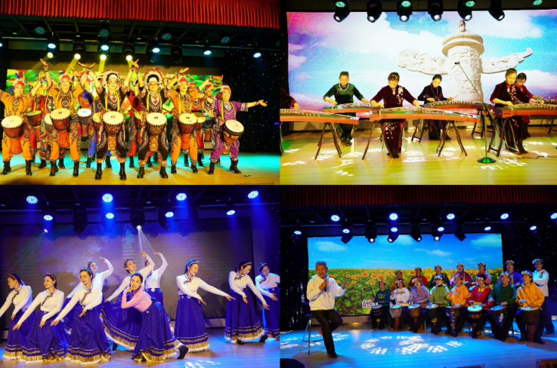 活动在激昂的非洲鼓节目《旗开得胜》中拉开序幕,随着鼓点的奏响,15个教学成果展示节目依次闪亮登场。八段锦《武动乐龄》、舞蹈《洗衣歌》、《雪域草原情》、《次仁拉索》、钢琴四手联弹《戏剧舞》、唐代煎茶道茶艺表演《冬至阳升》、合唱《萱草花》、《在太行山上》等节目将活动一次次推向高潮。翩翩舞姿、袅袅余音,充分展现了新时代老年学员美丽的银铃风采,诠释了幸福快乐的老年生活。