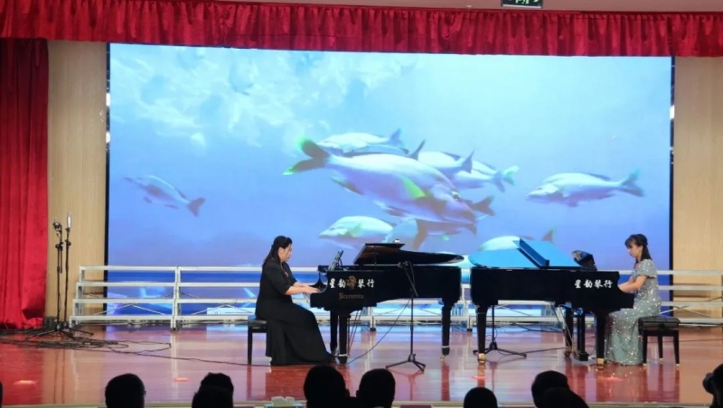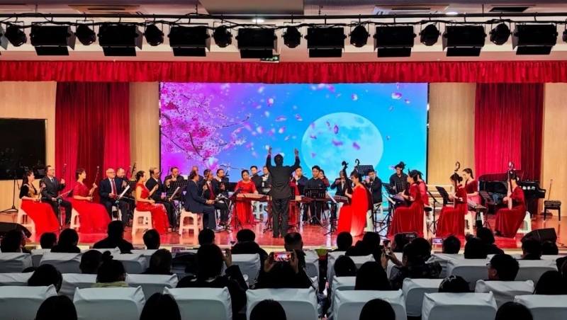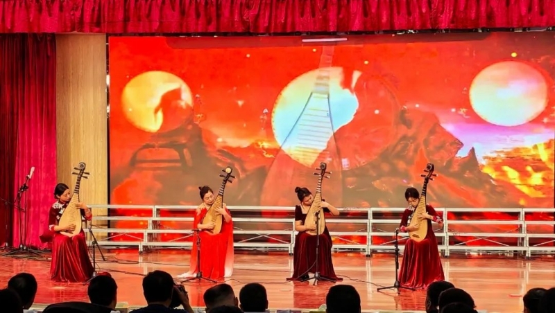 音乐会在激昂的民乐合奏《花好月圆》《喜洋洋》中拉开序幕,瞬间点燃了现场气氛。喜气洋洋、欢乐和谐的旋律表达了对伟大祖国的热爱与祝福。随后女声独唱《科学的春天来到了》,以生动的音乐语言向师生讲述国家科学技术发展的日新月异,科技工作者努力奋斗、永攀高峰的学术精神。琵琶合奏《新编十面埋伏》、二胡齐奏《奔驰在千里草原》、古筝合奏《夜深沉》用丝丝入扣的琴弦、悠扬婉转的合奏描绘出了杀气腾腾的战场,描绘出了骏马驰骋奔腾的草原,让师生感受到了传统乐器的魅力。《匈牙利舞曲》富有异域风情和活力,舞蹈串烧《Super girl》青春靓丽,笛子独奏《沂河欢歌》、男声小合唱《雪花的欢乐》《莫尼山》酣畅淋漓的描绘出祖国美丽的画卷。最后的合唱《东方之珠》《让世界都赞美你》,旋律婉转激昂,美妙的音符回荡在会场上空。余音缭绕的动人场景让人不禁感叹中华民族深厚的文化底蕴与绚丽多彩的文化艺术。精彩纷呈的表演、八音迭奏的器乐交织出一曲曲欢腾喜气的乐章,整场晚会洋溢着喜庆、欢快的氛围,感染着现场每一位师生,呈献了一次高雅的艺术盛宴。
