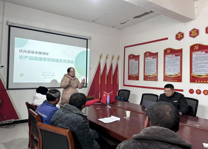 12月26日,郑州工程技术学院商学院芦阳、侯燕、彭云龙老师在校地结对帮扶工作队队长于书伟的协调和带领下,分别前往周口市扶沟县为城郊乡村支书、练寺镇刘村、桑村、张店村群众开展农产品电商直播实操技巧培训。